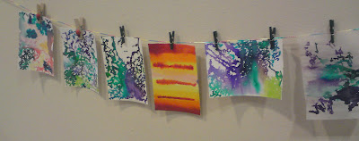 About four this afternoon a couple of girls from my brother's school dropped by (different year though), we got to talking about their art projects and how it can be hard sometimes to just "make art" without it feeling forced. So I showed them how I've been making watercolours lately, by spritzing the page with water then watching the colours spread into the grain of the paper. They had a play while I worked on the bonsai, was lovely to have people to chat to at that time of the afternoon. I like the thought that they felt comfortable enough at Emerald Arts to hang out too, because that's kind of how I see the place, somewhere to chill, create, stuff like that.